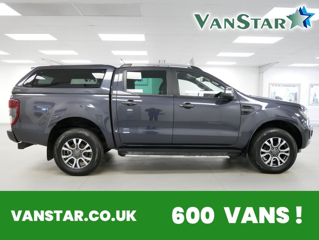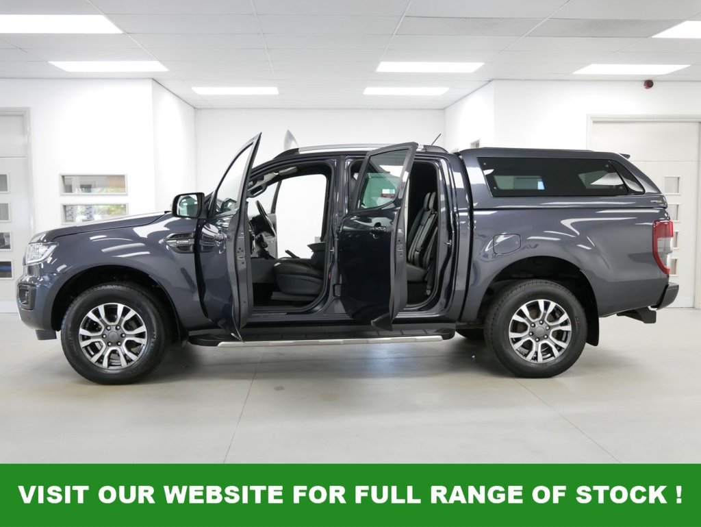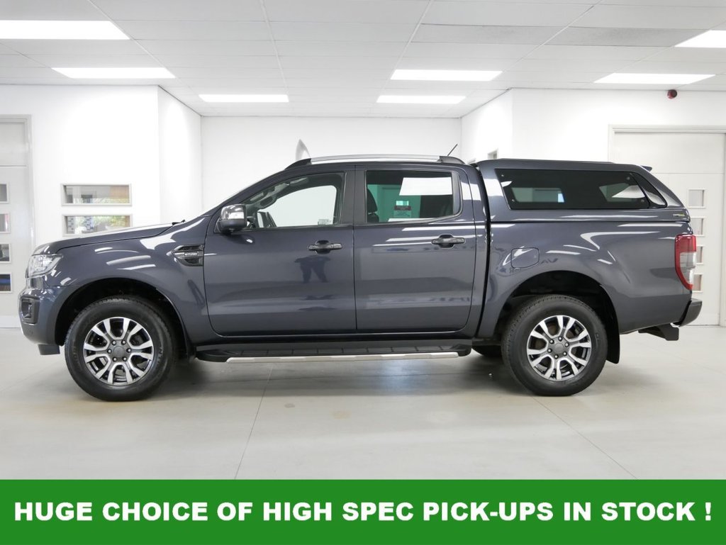 70 Plate Ford Ranger 2.0 EcoBlue 213 BHP Wildtrak Edition 4WD Automatic Crewcab Pick-Up .. High Spec Example in Metallic Sea Grey with Air Con , Alloys , FACTORY SAT NAV MEDIA , FULL BLACK LEATHER INTERIOR , GLAZED CANOPY , TOW PACK , Heated Seats , Electric Windows + Mirrors , Power Folding Mirrors , Privacy , Bluetooth , Cruise Control , Park Sensors , Reverse Camera , Roof Bars , Side Bars , Load Liner , Plus all usual styling and refinements found in the High Spec Wildtrak Edition models .. Euro 6 Compliant .. Only 1 Owner , Just 58000 Miles , Service History ! Great Spec , Ready to Go !