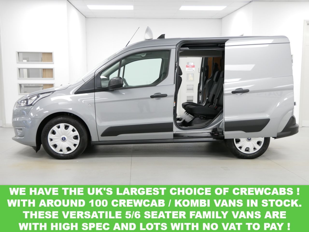 2024 PLATE FORD TRANSIT CONNECT 1.5 ECOBLUE 100 BHP L1 240 SHORT TREND EDITION 6DR CREWCAB 5 SEATER .. GREAT SPEC EXAMPLE in Metallic Solar Silver with Air con , 5 SEAT FACTORY CREWCAB , TWIN SIDE ACCESS DOORS / 6 DOORS , UPGRADED 240 WEIGHT SPEC , Electric Windows + Mirrors , Heated Front Screen , Remote Central Locking , Factory Rear Parking Sensors , Bluetooth , Cargo Lining , Load Guard , Plus all usual styling and refinements found in the HIGHER SPEC TREND EDITION models .. EURO 6 COMPLIANT .. ONLY 1 OWNER FROM NEW , JUST 11000 MILES ! Serviced ! Great Spec , Ready to Go!