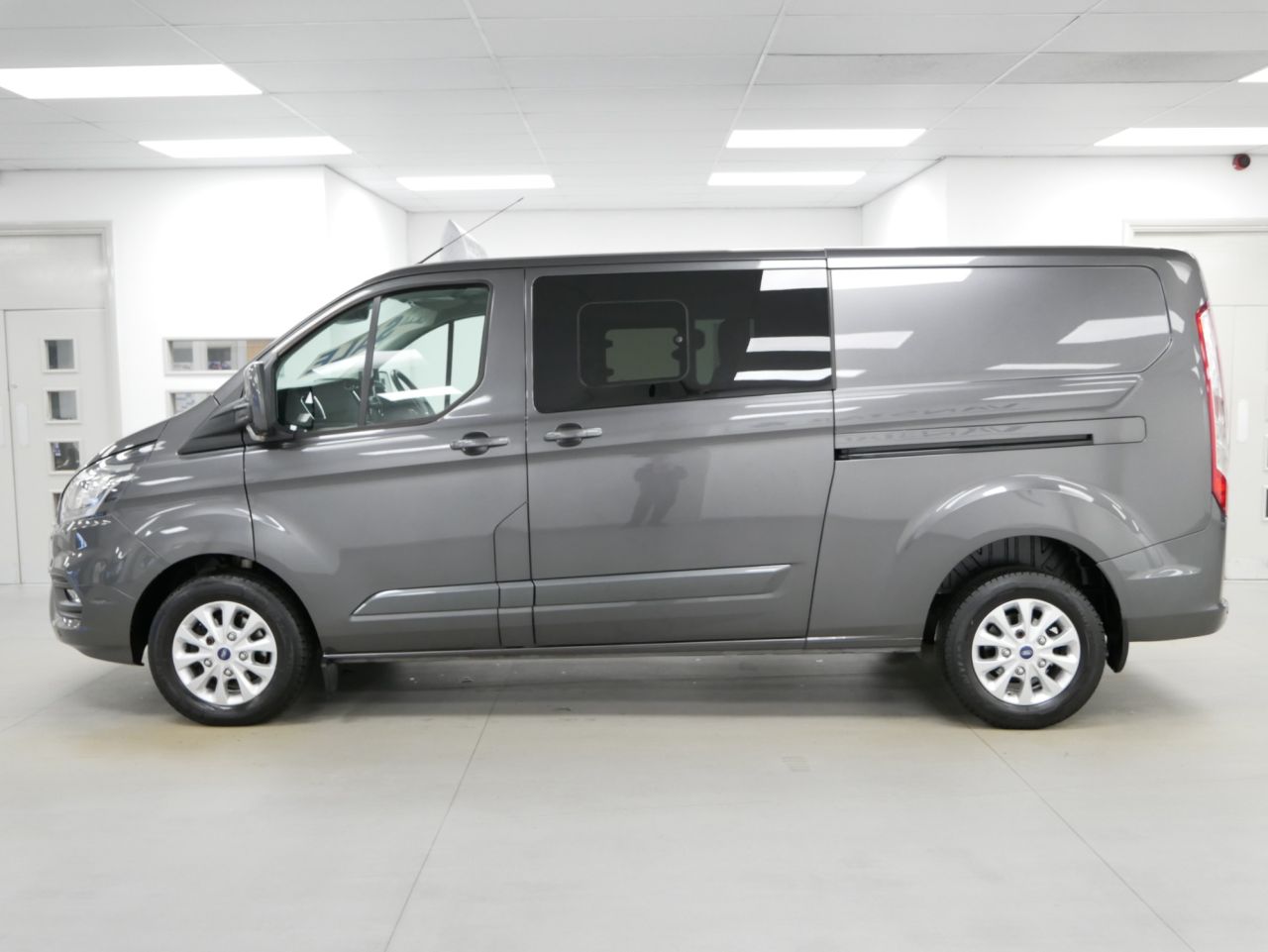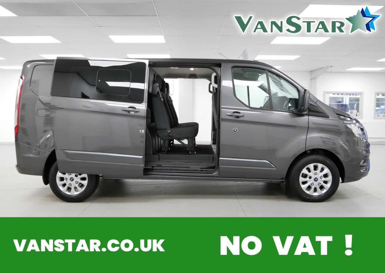 NO VAT ! .. 70 Plate Ford Transit Custom 320 2.0 EcoBlue 130 BHP L2 Long Wheelbase Limited Edition 5 Door Crewcab 6 Seater .. High Spec NO VAT Example in Metallic Magnetic Grey with Air Con , Alloys , Factory CARPLAY / Smartphone Sat Nav Media , TWIN SIDE ACCESS DOORS + TAILGATE , 6 Seats , Upgraded 320 Weight Spec , Heated Front Screen , Heated Front Seats , Electric Windows + Mirrors , Power Folding Mirrors , Privacy , Cruise Control , Bluetooth , Factory Front + Rear Parking Sensors , Cargo Lining , Bulkhead , Plus all usual styling and refinements found in the High Spec Limited Edition models .. Euro 6 Compliant .. Only 1 OWNER , Just 44000 Miles , 2 x Services ! Great Spec , Best of all , NO VAT TO PAY !